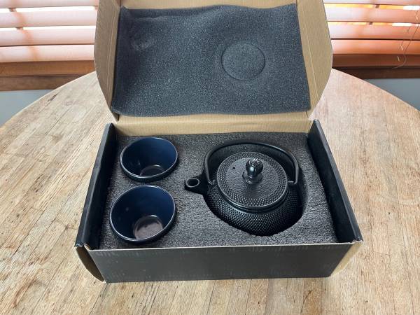 This is a cast iron tea pot with 2 cast iron cups (enamel interior). Used only once, and selling b/c no longer interested in tea culture. $95 value, but asking just $45. Zero damage. Still in original padded packaging box. Available in the south hills and downtown Pittsburgh. Email if you are interested!