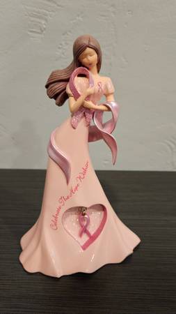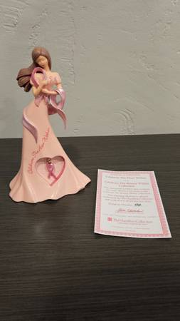 New Celebrate The Hope Within. The Hamilton Collection #0732. With Certificate of Authenticity. Kelli Edwards. Pink Sparkly with breast cancer ribbon inlayed in skirt. Approx. 4.5"X3"X8" tall. In original Styrofoam but no box. Excellent new condition.