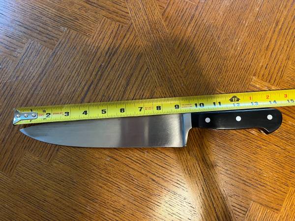 9" chefs knife, sturdy and in great condition. Pick up in Friendship or can deliver in Pittsburgh for $5.