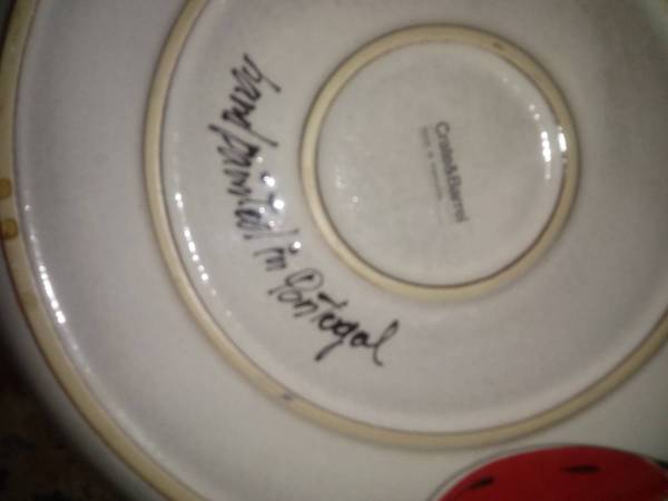 Crate and Barrel retired tomato pasta serving and 2 pasta bowls. $60. Hand painted in Portugal.