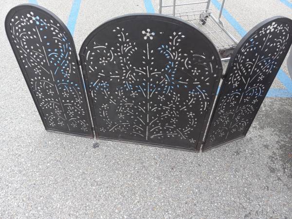 Elaborate Metal Hand Punched Fireplace Screen. It measures 49 " fully open and 24 " closed and 30 " high. $150