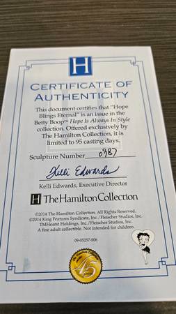 The Hamilton Collection "Hope Blings Eternal" #0987 Betty Boop. Part of the Hope is Always in Style Collection. In original packaging. Includes Certificate of Authenticity. Excellent condition