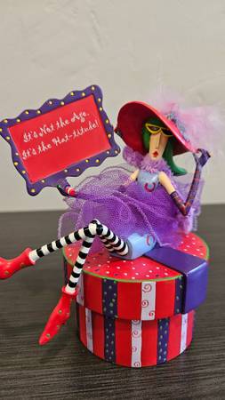 It's Not The Age, It's The Hat-Titude Red Hat Lady Hamilton Collection Music Box. Plays "Girls Just Want to Have Fun". In original packaging. With Certificate of Authenticity. Excellent Condition