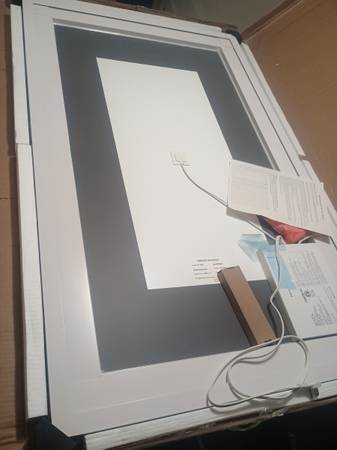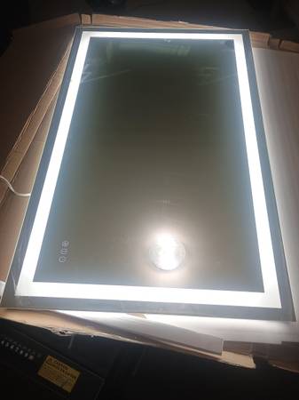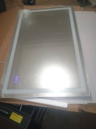 Up for sale a big mirror. It's lighted with back light dimmable and heated. I bought this well ahead of our bathroom remodel only to find out after I had to move a wall that it doesn't fit and of course it's well after the return period. This unit is in perfect working order I had it out of the box only to inspect it upon purchase and to take photos for listing purposes. I paid somewhere around 300 for it. I'm just looking to recoup some of my money.