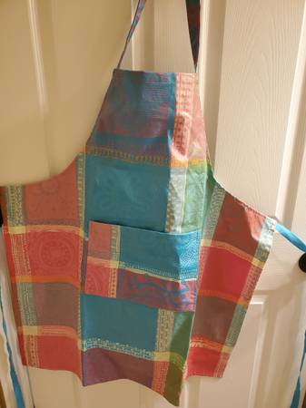 This listing is for a New Beautiful Garnier-Thiebaut French Jacquard Bib Apron. 100% cotton. Can be wiped clean. Beautiful for Spring. Adjustable neck strap. Ties in back. Front pocket. Excellent...