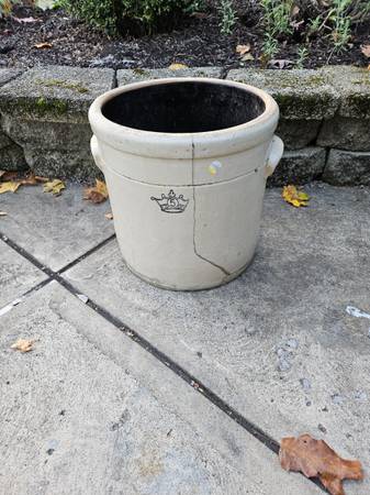 Vintage Crock Stoneware Pottery Crown 5. Approx. 11.5 diameter X 12.5" tall. There are some cracks. Adds to the character of this piece.