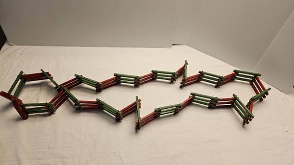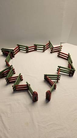 Vintage Red and Green Wooden Christmas Fence. Approx 8 ft long. Can be used in various shapes. Very nice coloring. Bendable. Foldable. Great vintage condition.