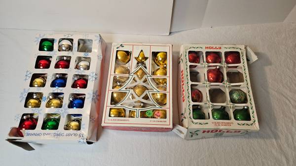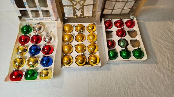 Vintage Shiny Brite Glass Christmas Ornaments Balls. 35 Balls in all. One is missing a top hanger. 2 are smaller. Great vintage condition.