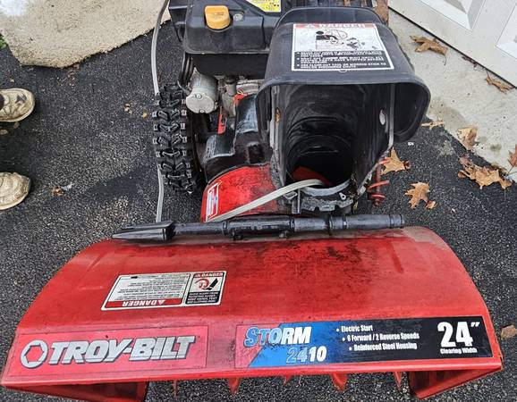 Make clearing snow easy with the Storm 2420. The 24 in. clearing width, powerful 208cc engine, and self-propelled drive system are designed to clear up to 12 in. of snow. The rugged, 12-in. serrated steel augers are designed to make quick work of snow, and a center-mount chute crank that puts the controls comfortably within your reach. The extended chute is designed to minimize snow blowback on the operator. Runs great.