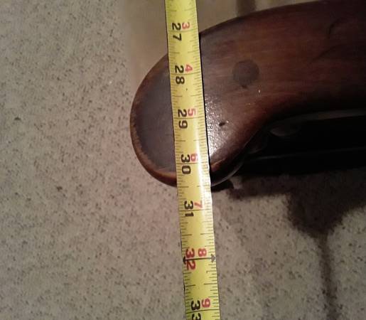 Wooden arm chair in great shape for a piece of furniture that's over 50 years old . It's solid wood and very sturdy , so this is no lightweight chair and will last for a long time . You can see the dimensions of it in the photos . We've had this chair in storage for a while figuring we might use it again , but haven't needed it . The chair is very comfortable to sit on it just doesn't get used anymore . The cushion covers have been replaced on it , but we still have the original black leather ones if someone chooses to get the chair reupholstered again .