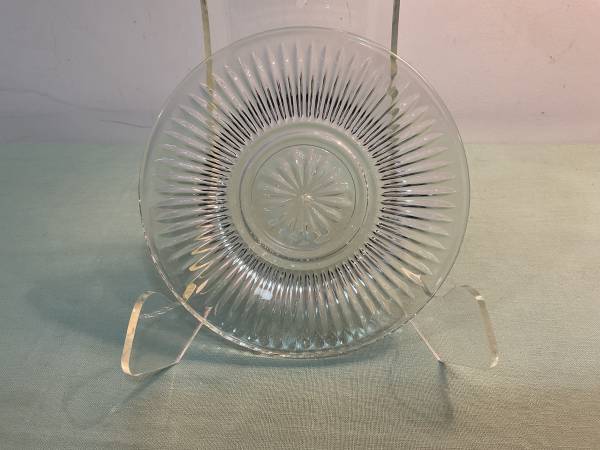 Beautiful late 20th century contemporary dish set made by KIG (Kedaung Industrial Group) in Indonesia. Clear pressed glass in an eye catching Starburst pattern. 4-piece place settings for 24 guests = 96 pieces. Rare opportunity to purchase a large, matching set in one purchase. Exceptional preowned vintage condition. Buyer receives: 24 - 10” Entree Plates, 24 - 7” Appetizer/Salad/Lunch Plates, 24 - 7” Bowls, 24 - 7” Dessert Plates. $385 or reasonable offers welcome. Photos are part of the description. Cash only. If posted, item is available. To purchase, choose a location from the list below and suggest a meeting day/time: