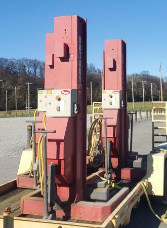 We're offering for sale a 4 jack lifting system for trucks and heavy equipment. 15,000 pound capacity per jack for a total lifting capacity of 30 tons. The jacks are fully synchronized and all raise and lower together with a single control. This system has no issues. Wired for 240V 3-phase. Please text 412-two06-1622 if interested. No low ballers or tire kickers please.