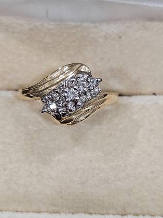New 14k yellow gold ring containing 15 small diamonds it is a size 5.5 and weights 4.3 grams comes with new ring box