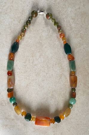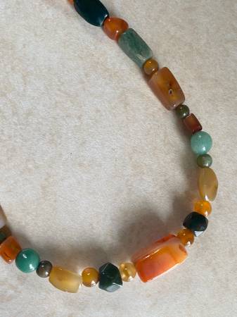 Orange, Green and Gold Color Agates are semi-precious stones over 50 years old from Africa 18”