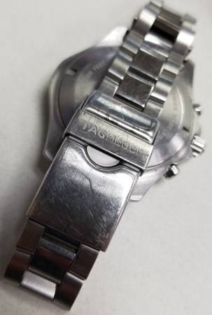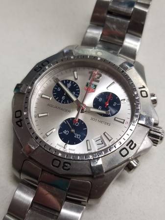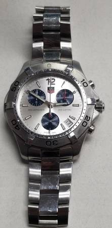 Beautiful men's Genuine Tag Heuer Aquaracer 300 Meter Diver's Split Second Chronograph Watch. Working perfectly and in excellent condition. Stainless steel, 45mm diameter. 8" Bracelet. If interested please call or text 7two4 746 9190. No emails please.