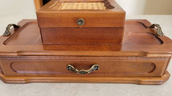 Nice jewelry box. Drawer with two storage areas. Top compartment. Pick up or can meet in the area.