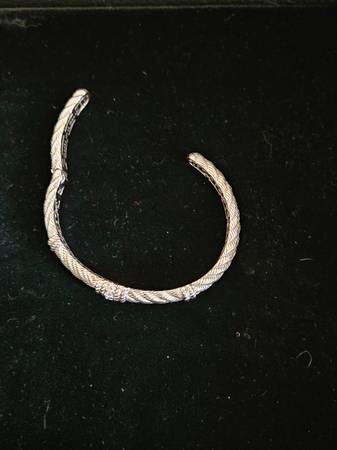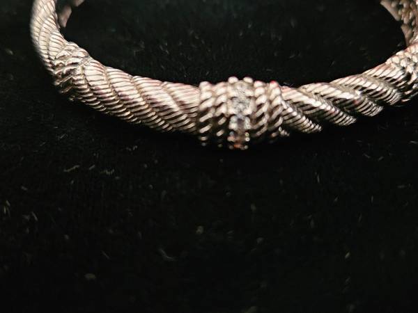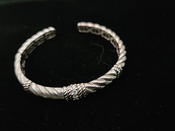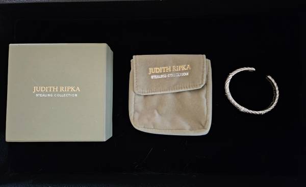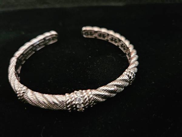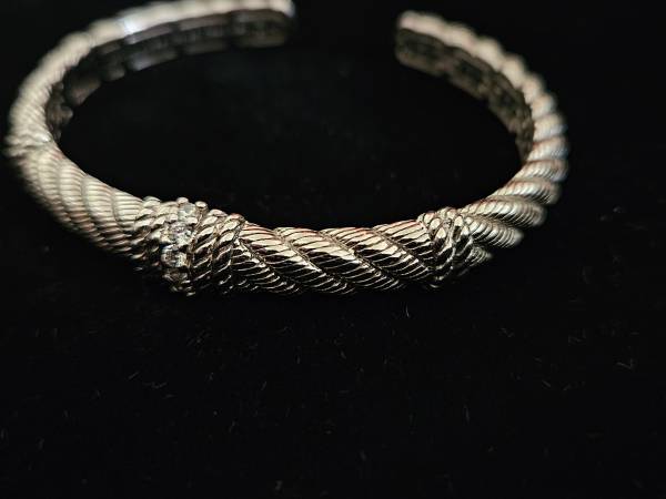 Judith Ripka Sterling Silver Hinged Rope Cuff Bracelet with diamonique CZ accents. In fabric pouch. In original box. Perfect gift for the love one in your life! Excellent condition.