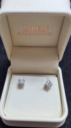 This is a beautiful pair of screw back 14 karat white gold and diamond earrings from Jared's. They were over $3,500 new. They are in like new condition. Each Diamond weighs .75 carats, and they are round brilliant cut, H color, and SI1 clarity. These are natural diamonds NOT lab created.