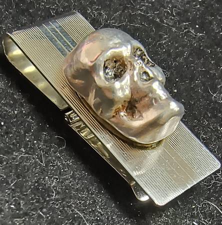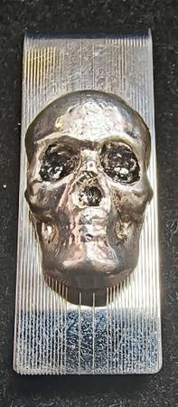 .999 SILVER 3-D SKULL on STERLING SILVER MONEY CLIP Custom made with a 1 oz .999 find silver hand poured skull mounted to a solid sterling silver high quality spring mount money clip. If interested...