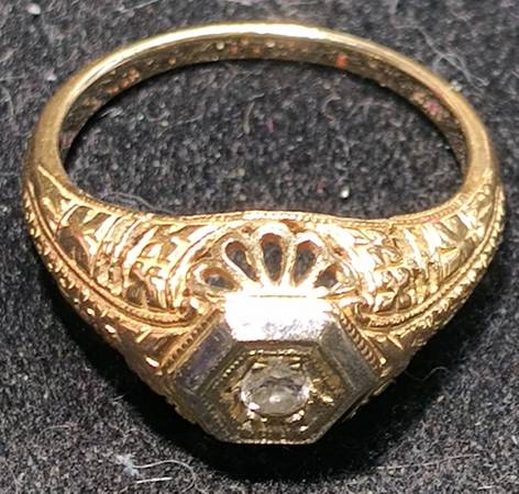 💎 Antique 14k Yellow Gold FILIGREE DIAMOND RING 💎