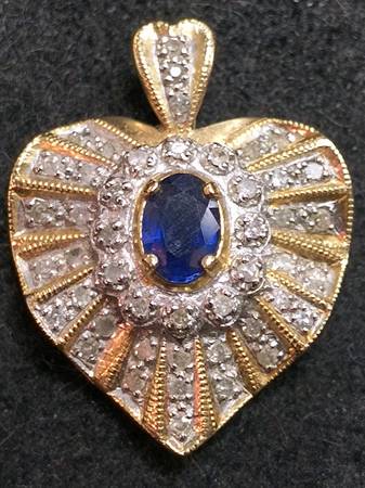 💎 💜 Diamond & Sapphire 14k Yellow Gold HEART PENDANT 💜 💎