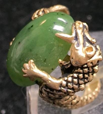🐉 DRAGON Holding JADE Custom Made 3- D 14k GOLD RING 🐉