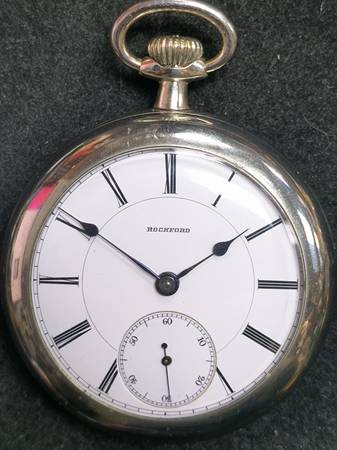 ROCKFORD POCKET WATCH in SALESMAN'S DISPLAY CASE Beautiful vintage Rockford pocket watch in a really cool salesman's 18 size display case. Running strong and keeping accurate time. If interested...