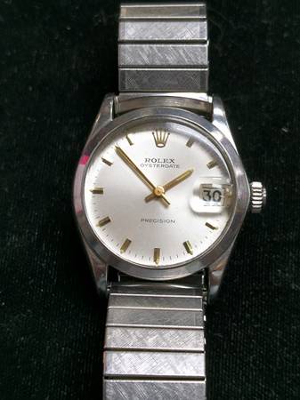 Model 6466 with a 17 jewel manual wind movement. Non quickset date. Silver dial in pristine condition. Acrylic crystal. 30mm diameter Stainless Steel Oyster case. Rolex signed crown.