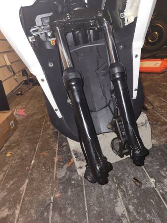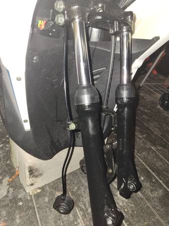 I need a motorcycle/scooter mechanic to inspect and realign the front forks on my Saipan 200 EFI scooter. The bike had a light crash in grass, and the front wheel is slightly out of alignment with the handlebars. The wheel and forks appear intact, likely just a twisted front end.