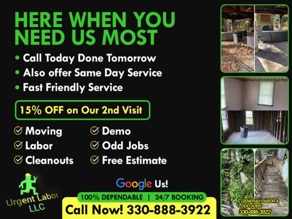 General Labor & Book Here✅✅ https://www.urgentlabor.com/ Urgent Labor LLC Here When You Need Us Most Call Today Done Tomorrow Also offer Same Day Service Fast Friendly Service Call Now 100%...