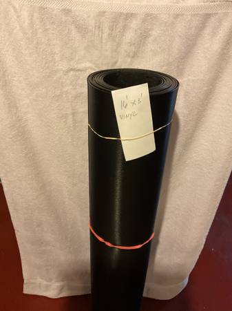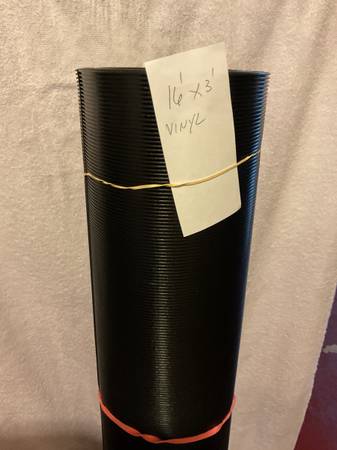 New, never used, v groove extruded vinyl utility floor runner. Black, heavy duty floor runner 3’ x 16’ Back side is smooth. Cuts easily with good scissors. Use on porch, patio, shed, garage, deck, or on home interior renovation like I did. Slip proof. Bought in bulk at Lowe’s for $3 a foot and had this left over.