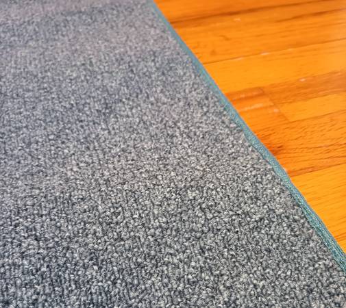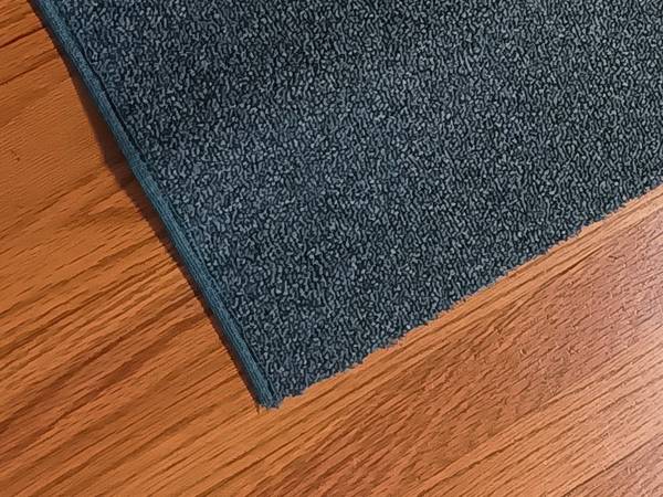 Part of a larger area rug that was cut to fit a small space. L shape. The main part of it is an outsized 3'x5', see diagram. Bound on two sides, and the bound sides are roughly 5½'x5'.