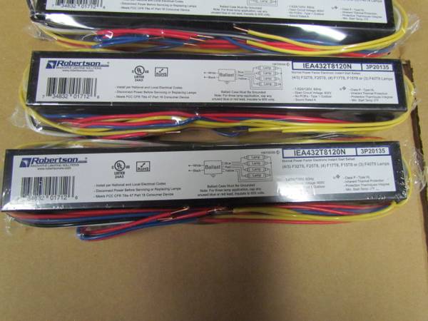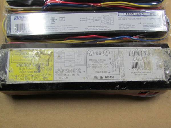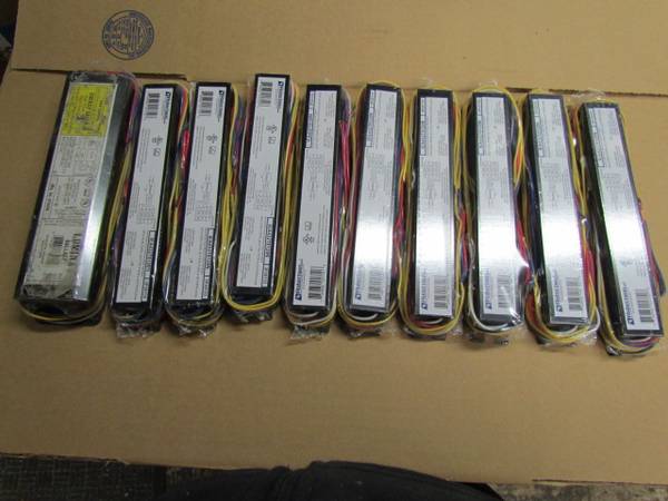 This is a lot of 10 ballasts: 1 Lumina ballast for a 2 bulb T12 light fixture (New) 9 Robertson ballasts for a 4 bulb T8 light fixture (New) $45 OBO