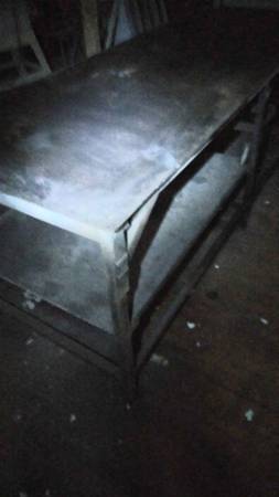 Welding bench is 8' x 36 " x 35 "h. with 3/16 " thick black iron top with heavy gauge angle frame with 4' long removable type undershelf. MUST BRING ENOUGH PEOPLE TO LOAD- IT IS HEAVY.