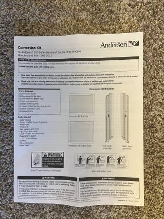 Brand new Andersen Window Conversion Kit- wrong size ordered - manufacturer won't take back as it was painted terratone (brown) color. Still in box with labels, stickers, etc. Double hung.