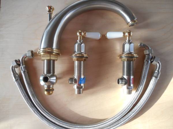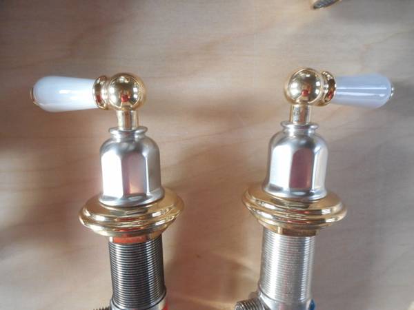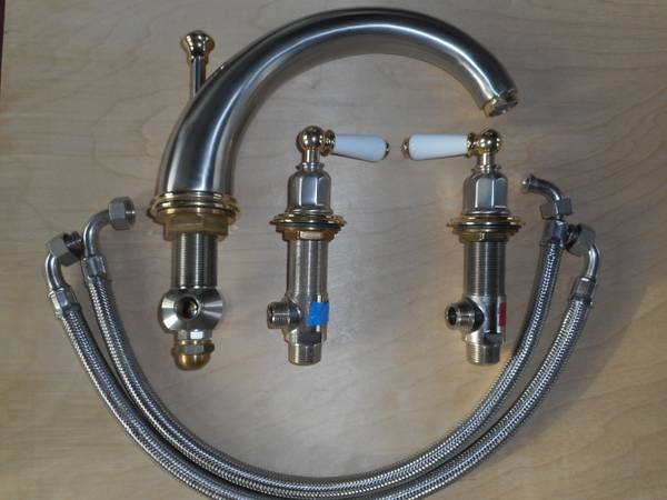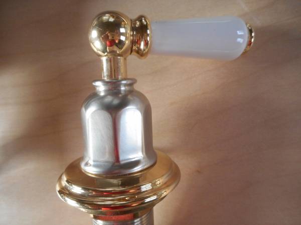 New Rohl/ Perrin and Rowe Tub Filler/ Faucet with porcelain handles Satin Nickel and Brass finish Made In England, U.K., Britain Solid Brass construction Ceramic valve cartridges $450.00 Rohl,...