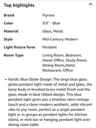Dark blue pendant light New in box Pickup in Monessen between 11am-8pm I respond quickest to txt messages