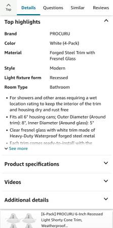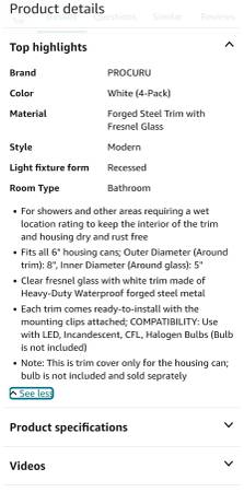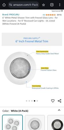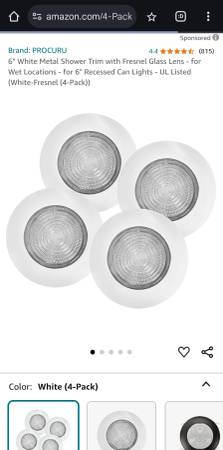 Rated for damp/shower locations. Set of 4. These are light covers only. Light fixtures not included. New in box. Pickup in Monessen between 10am-8pm.