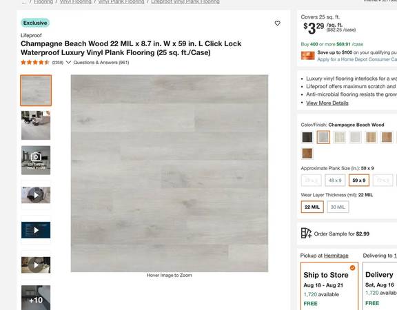 7 mm thickness x 8.7 in. width x 59 in. length; 22 mil wear layer