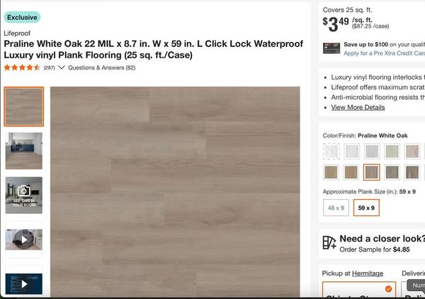 7 mm thickness x 8.7 in. width x 59 in. length; 22 mil wear layer