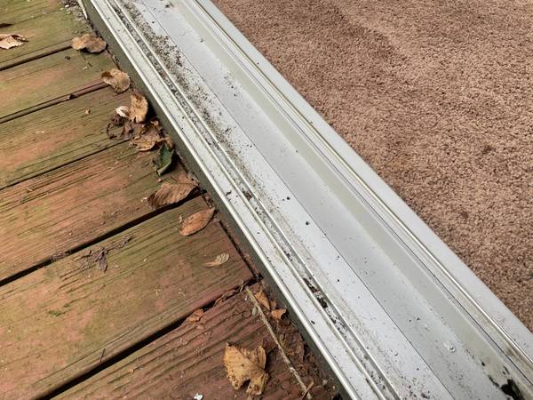 Included is the doorframe catch and a lower mounting bracket that held the stationary side. No frame or channel is included, but pictures show the old setup so you can see how it was installed.