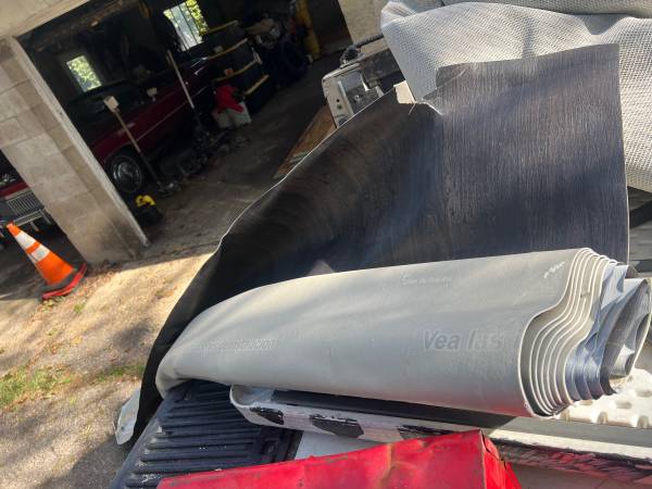 Two rolls of commercial vinyl faux hardwood 10 ~ 20 feet and one roll of gray carpet 10~10