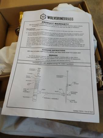 Wolverine brass faucet 100.00 Moen faucet and valve kit 100.00 American standard single lever faucet 40.00