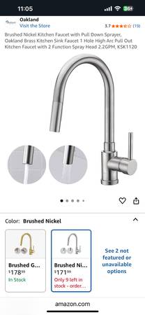 Oakland Brushed Nickel Kitchen Faucet with Pull Down Sprayer. Brand New in Box!!!! Currently selling on Amazon for $171.99 For complete Details search on Amazon: Oakland Kitchen Faucet KSK1120