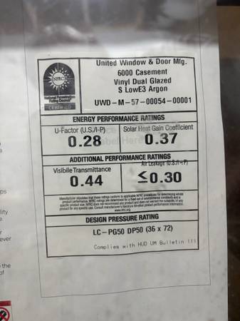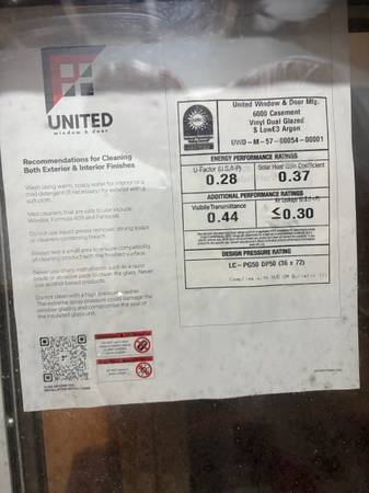 6000 Casement Vinyl Dual Glazed SLow E3 Argon Additional specifications in photos