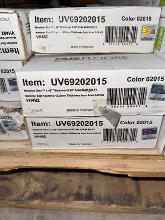 I have (5.5) cartons / 160 sq ft of brand new sealed boxes of first quality Pet proof Water proof luxury vinyl flooring. This product is a click locking floating floor that requires NO glue, or nails to install. It clicks and locks together. I am selling this as a full lot, and am asking $1.56 a sq ft / $250 for the lot. This retails for $6.50 sq ft. The product is made by Coretec Vv492 color 2015 natural maple. Plank size is 7” x 48” x 5mm ot has a pre attached cork cushion, with a 20 mil quality protective wear layer. This can be used residential or commercially. The pics in the ad are with and without flash, it is all the same product. Ready for immediate pickup! NO delivery, NO install, NO holds, NO checks, No IOUs ;) Please send questions through CL and i will respond. Please include a local contact number with your message or it will be ignored. If the ad is up it's still for sale. Please read the last two sentences again :)
