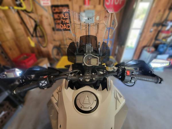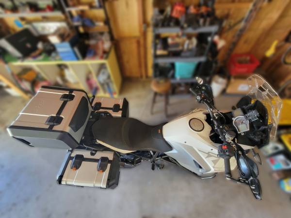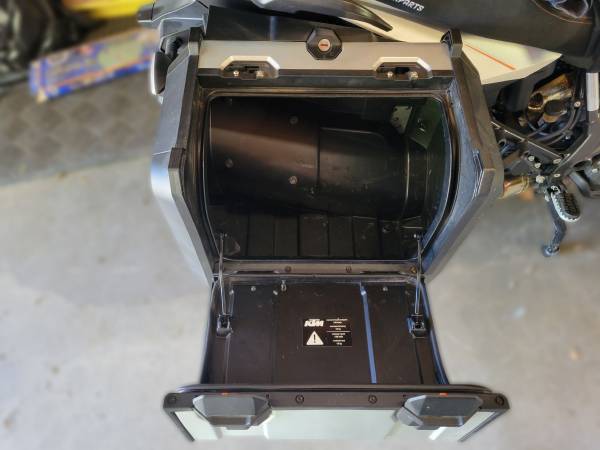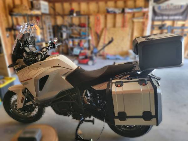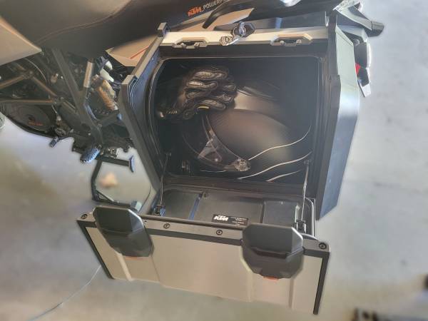 Hello, I'm looking to sell my late father's much loved motorcycle. It is a 2016 KTM 1290 Super Adventure S and has 16,718 miles on it. The motorcycle is in very good condition, it has always been well cared for and kept in the garage when not in use (it is currently on a battery tender). It includes 3 spacious hard cases; example shown of his helmet and gloves kept in the left case. Thank you for showing interest, I hope it can bring you lots of joy like it did for my dad.