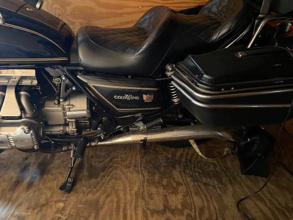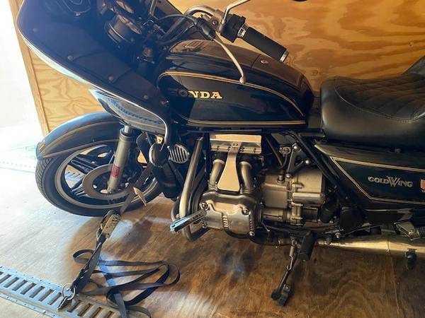 1980 GL1100 Good condition. Chrome & paint are decent. Ran when parked. Went to start it and it popped a relay so no spark. Gave up.