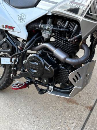 CSC Moto TT-250 Dual Sport 250cc Engine Carb and pipe kit installed- Stock pipe and carb jets included Electric Start, street legal Skid plate, pegs, hi-bar handlebar mounts, Lever guards