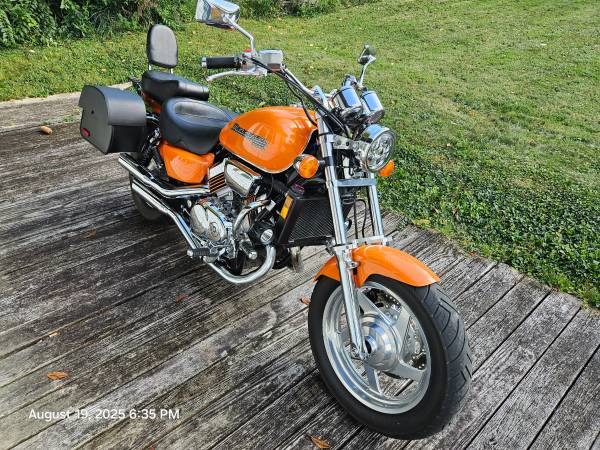 Up for sale is my well taken care of 1996 Honda Magna VF750C. I've gone over this bike from head to toe. This is not your 2 crappy portrait mode pictures taken with a potato camera in the dark from 20 feet away and a couple of sentences thrown in the description. This is 27th most expensive Magna on FB Marketplace within 500 miles of my city and overall better than all 27 of them, IMO. (I've looked.) Though I understand the color and some mods may not be to your liking.